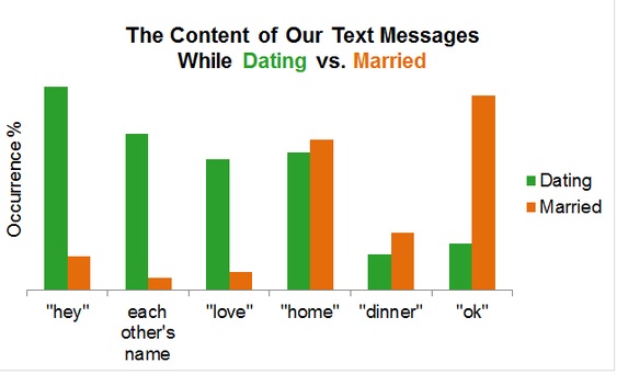 블로거이자 미국의 데이터 과학자인 엘리스 자오가 남편과 자신이 실제 주고받은 메시지를 분석해 ‘연애’ 때와 ‘결혼’ 때의 문자 메시지 차이를 설명해내 관심을 끌고 있다.