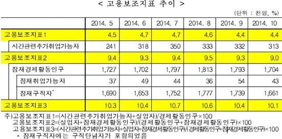 자료에 따르면 통계청은 고용보조지표가 ‘일하고 싶은 욕구가 완전히 충족되지 못한 노동력’을 나타내는 지표라고 정의했다.
