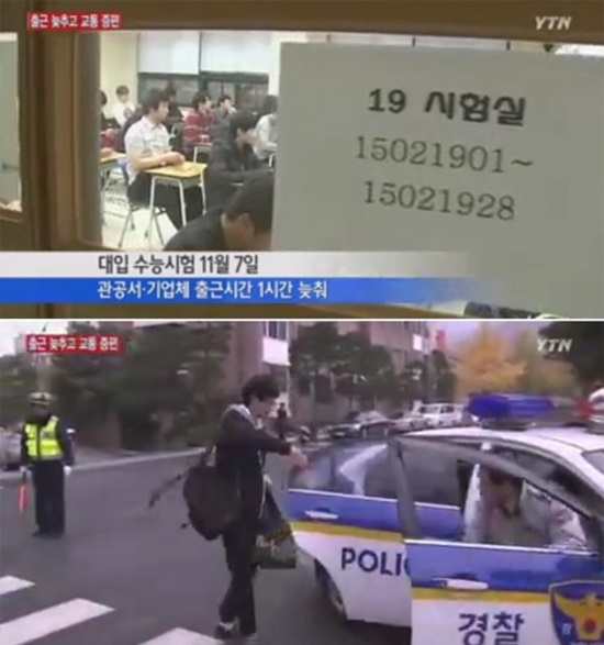 이 밖에도 수능일 은행 영업시간이 변경됨과 동시에 관공서 또한 출근시간이 10시로 변경됐으며 정부는 시험장 인근 군부대에 이 시간대 이동을 자제해 줄 것을 당부했다.