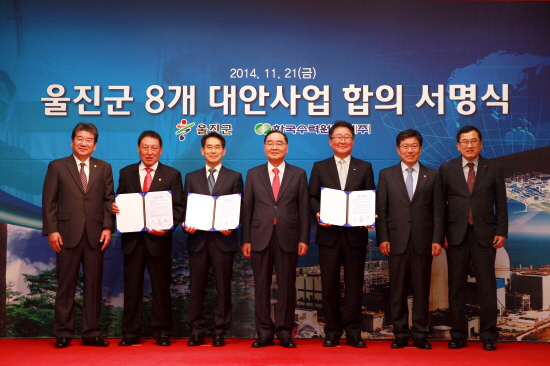 정부는 21일 오전 울진군청에서 한수원과 울진군이 ‘신한울 원전 건설관련 8개 대안사업 합의서’에 서명했다고 밝혔다.