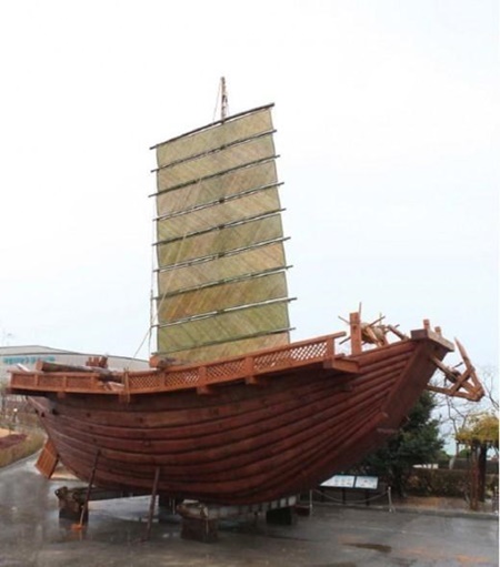 이는 화물 30톤(t) 가량을 실을 수 있는 규모이다. 또한 평평한 바닥 저판에 휜 통나무를 그대로 붙인 외판이 있고 1개의 대나무 돛 등을 갖췄다.