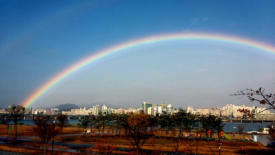 서울 하늘에 무지개가 관측돼 네티즌들의 관심이 높아지고 있다.