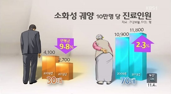 | ▲ 노령 소화성궤양 환자 증가/사진=KBS1 방송화면 캡처 |