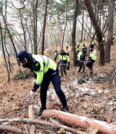| ▲ 7일 '장기없는 토막시신'이 발견된 경기 수원 팔달산 일대에서 경찰이 수색을 벌이고 있다. /사진=뉴시스 |