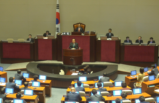 ▲ 제329회 국회(정기회) 본회의가 열린 10월 30일 오전 서울 여의도 국회 본회의장에서 문희상 새정치민주연합 비대위원장이 교섭단체 대표연설을 하고 있다. |