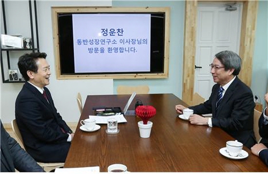 남 지사는 17일 오후 도지사 집무실에서 정운찬 이사장을 접견하고 “경기도 비전인 넥스트(NEXT) 경기 6대 분야 가운데 하나인 넥스트(NEXT)경제가 ‘성장과 배려’를 핵심으로 하는 신성장모델을 추구하고 있다.”라며 “정운찬 이사장의 ‘동반성장’ 전략은 경기도정 방향과 일치한다.”라고 말했다.