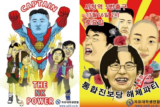 ▲ 자유대학생연합이 통합진보당(통진당)을 풍자하기 위해 2013년 제작한 포스터. /그림=자유대학생연합 홈페이지(http://www.uotl.co.kr/) |