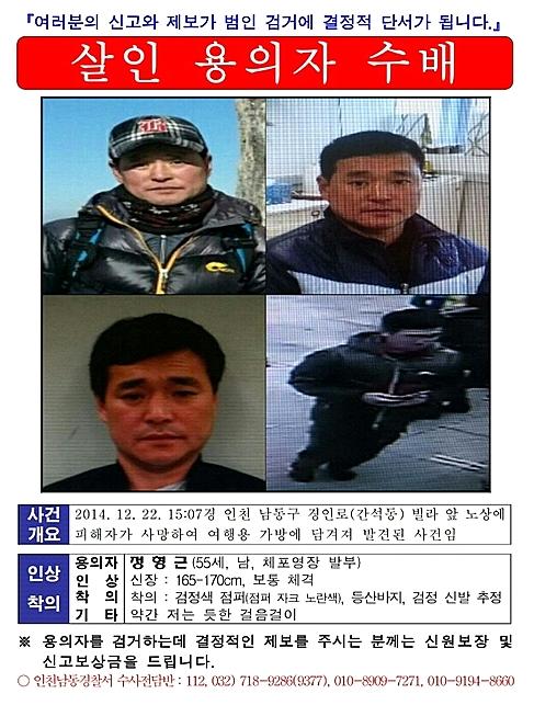 인천 70대 여성 여행가방 살해 용의자 정형근씨(55)가 종적을 감추자 경찰이 공개수배했다.