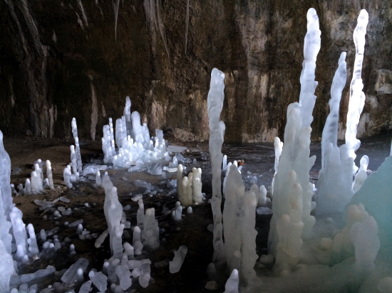 | ▲ 경기도 연천군 신서면 대광리 고대산 중턱에 위치한 폐터널에는 땅에서 솟아오르는 종유석 모양의 역고드름./뉴시스 |