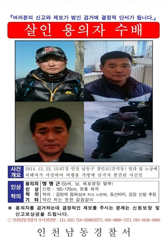 앞서 경찰은 지난 24일 흉기에 수차례 찔려 숨진 채 여행용 가방 속에 담겨져 버려진 A(71·여)씨를 살해한 용의자로 정형근을 지목, 체포영장을 발부받아 추적해 왔다.