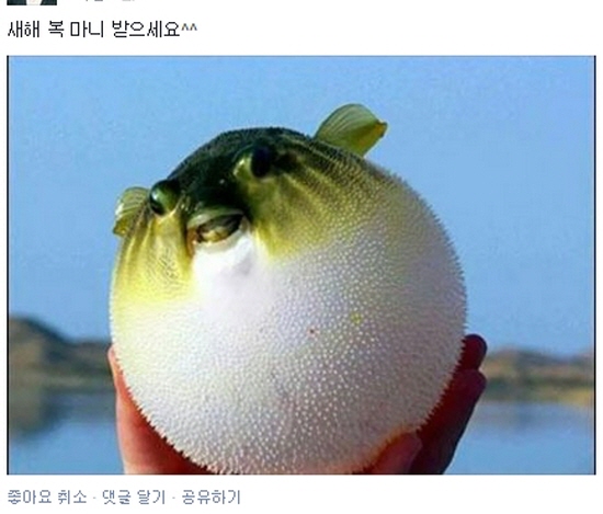 ▲ 한모씨가 “새해 복 마니 받으세요”라는 덕담을 올리며 복어 사진을 함께 게재했다. /사진=SNS 캡처 |