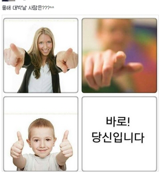 ▲ 김모씨가 “올해 대박날 사람은?”이라는 덕담을 올리며 손가락으로 상대방을 가리키는 사진을 함께 게재했다. /사진=SNS 캡처 |