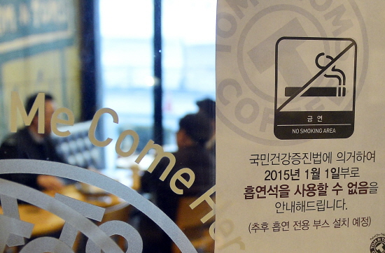 | ▲ 새해부터는 모든 음식점을 비롯해 카페, PC방 등 공중이용시설에서 담배를 피울 수 없다. 1일 서울 시내 한 카페에 흡연석을 사용할 수 없다는 문구가 게시되어 있다. |