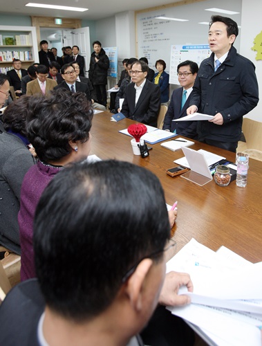 | ▲ 14일 오전 경기도지사 집무실에서 열린 "NEXT 토론회(따복공동체, 보육준공영제, 사회복지사 처우개선, 학교시설개선)"에서 남경필 경기도지사가 인사말을 하고 있다. |