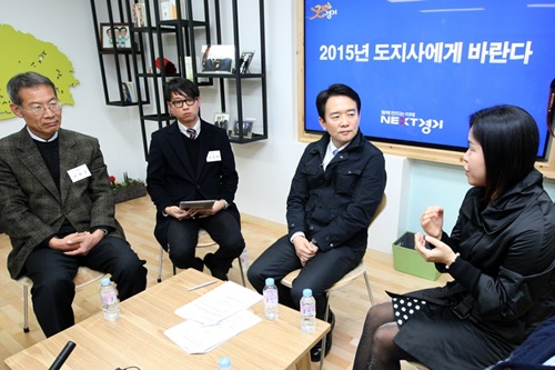 남경필 지사는 14일 오후 2시부터 2시간 동안 도지사 집무실에서 각계각층 도민 10명을 초청해 ‘2015년 도지사에게 바란다’란 제목의 간담회를 열었다.