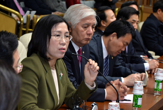 | ▲ 지난달 23일 국회 본청 회의실에서 열린 새누리당 원내대책회의에서 김현숙 대변인이 공무원연금, 사학연금, 군인연금법에 대해 이야기 하고 있다./뉴시스 |