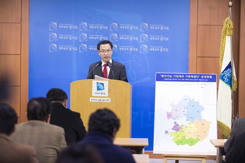 | ▲ 28일 오후 경기도청 브리핑실에서 전본희 경기도 감사관이 "찾아가는 기업애로 기동해결단"관련 브리핑을 하고 있다. |