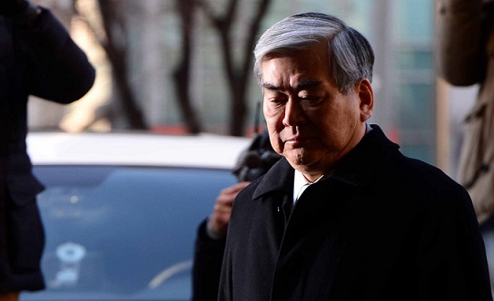 | ▲ 30일 조현아 전 대한항공 부사장의 아버지인 조양호 한진그룹 회장이 땅콩회항 사건 2차 공판 증인 자격으로 출석하기 위해 서울 마포구 서울서부지방법원으로 들어서고 있다. /사진=뉴시스 |