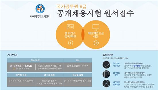 사이버국가고시센터에서는 6일까지 국가공무원 9급 공개채용시험 원서접수를 받는다.