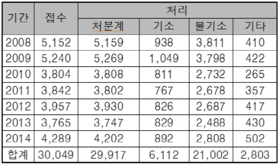 김진태 의원이 밝힌 간통죄 접수처리 현황은 아래 표와 같다.