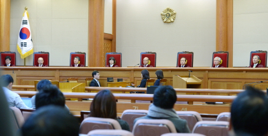 | ▲ 간통죄 62년만에 폐지. 박한철 헌법재판소장과 헌법재판관들 간통제에 대해 재판관 9명 가운데 7명이 위헌 의견을 밝혔다./뉴시스 |