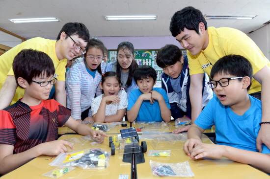 ▲ 위 사진은 기사 내용과 관련이 없습니다. 서울 봉화초등학교 학생들이 현대모비스의 <찾아가는 주니어 공학교실>에 참가해 태양열 자동차를 직접 만들어 보고 있다. /사진=현대모비스 제공 |