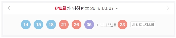 640회 로또 1등 당첨번호는 '14, 15, 18, 21, 26, 35'이다.
