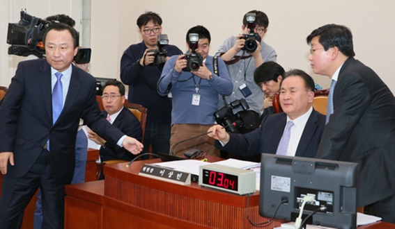 ▲ 지난 3일 국회가 김영란법을 통과시켰다. 법조계 일각에선 위헌이라 지적하며 박근혜대통령이 거부권을 행사해야 한다고 강조하고 있다. 국회 법사위 이상민위원장이 여야의원들과 협의하고 있다. /사진=연합뉴스 |