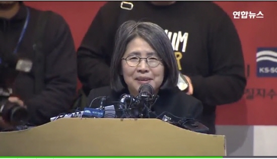 ▲ 김영란 전 국민권익위원장이 김영란법에 대해 입장을 밝히고 있다. /사진=연합뉴스TV 캡처 |