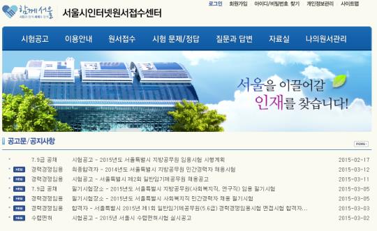 2015년 서울시 공무원 시험 원서 접수는 서울시 인터넷 원서 접수 센터 홈페이지에서 가능하다