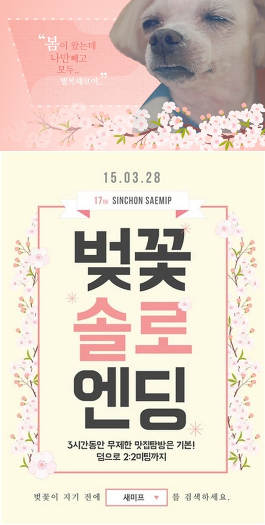 새마을미팅프로젝트(새미프) 측은 "오는 28일 신촌 연세로 일대에서 청춘남녀 300명(남녀 각 150명)이 참여하는 봄맞이 미팅 이벤트 '벚꽃솔로엔딩'을 개최한다"고 19일 밝혔다.