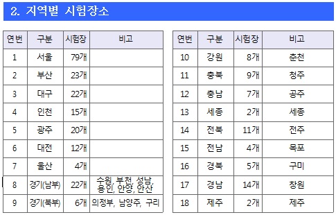 | ▲ 사이버국가고시센터 공고 9급 국가공무원 응시 장소. /사진=사이버국가고시센터 |