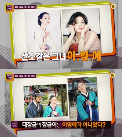 14일 방송되는 ‘대찬인생’에서는 90년대를 풍미한 ‘산소같은 여자’ 이영애의 극비결혼과 드라마 ‘대장금’ 주인공 캐스팅의 뒷이야기를 다뤄본다.