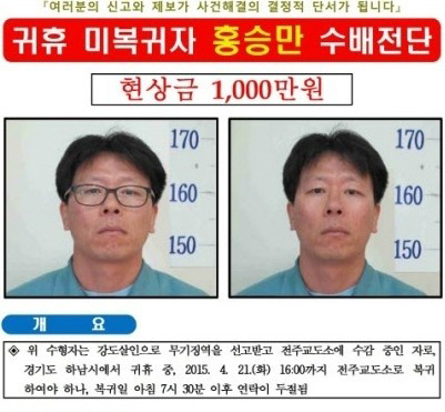 [미디어펜=이상일 기자] 29일 오후 4시 20분경 경남 창녕에서 변사체로 발견된 남성이 잠적한 무기수 홍승만(47)으로 밝혀졌다.