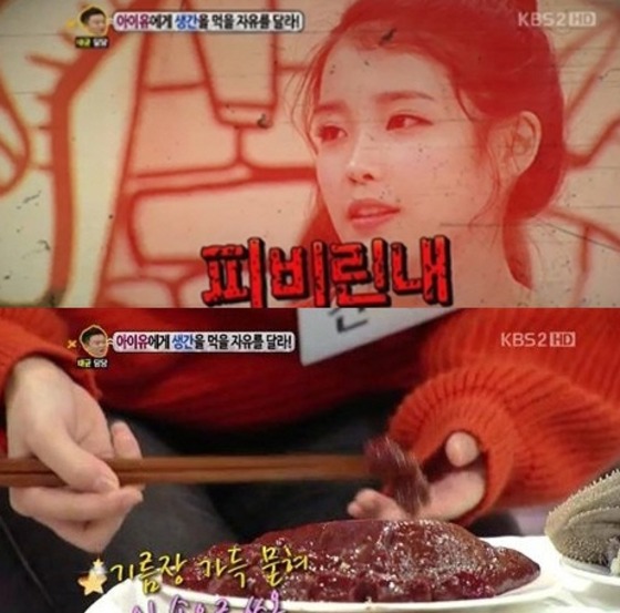 이에 MC들은 "1년에 생간을 몇 번이나 먹냐"고 물었고 아이유는 "마음 같아서는 매일 먹고 싶은데 구하기 힘들어서 한 달에 2~3번 정도 먹는다"며 "생간의 피비린내가 좋다. 진짜 맛있게 생겼다"고 말해 시청자들을 놀라게 했다.