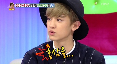 이날 MC들은 게스트들에게 "건강을 위해 챙겨먹는 게 있냐"고 질문했다. 그러자 백현은 "공진단을 먹는다"고 그만의 독특한 방법을 전했다. 또 찬열은 "홍삼을 종류별로 먹는다"고 밝혔다.
