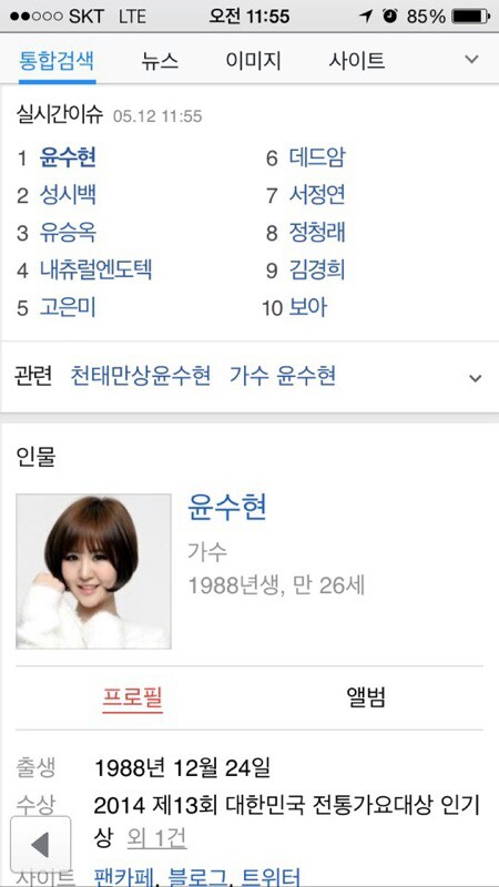 12일 오전 윤수현은 포털 실시간 검색어 1위를 차지했다. 윤수현은 데뷔곡 '천태만상'의 인기에 힘입어 중국어 버전 앨범까지 출시해 중국 대륙으로 본격 진출한다.