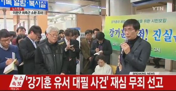 | ▲ '유서대필' 강기훈, 24년만에 무죄 확정/ 사진=YTN 방송 캡처 |