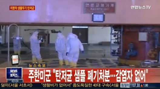 | ▲ 정부는 미국 군연구소에서 부주의로 탄저균이 주한미군 오산 공군기지로 배송된 사고와 관련해 미측으로부터 관련 사실을 통보받았다./사진=연합뉴스TV 캡쳐 |
