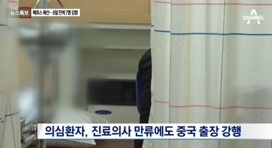 | ▲ 중국으로 출국한 국내 중동호흡기증후군(메르스) 의심 환자가 광둥(廣東)성에서 격리치료를 받고 받고 있는 것으로 중국 방송을 통해 보도됐다./사진=채널A캡쳐 |