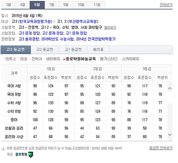 | ▲ 6월 모의고사 등급컷/사진=네이버 캡처 |
