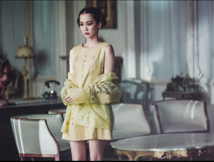 신현빈은 해당 사진에서 고풍스런 짙은 메이크업과 양 옆으로 말아올린 헤어스타일을 하고 옐로우 슬리브리스 미니 원피스를 착용, 소녀의 아름다움을 연출하고 있다.