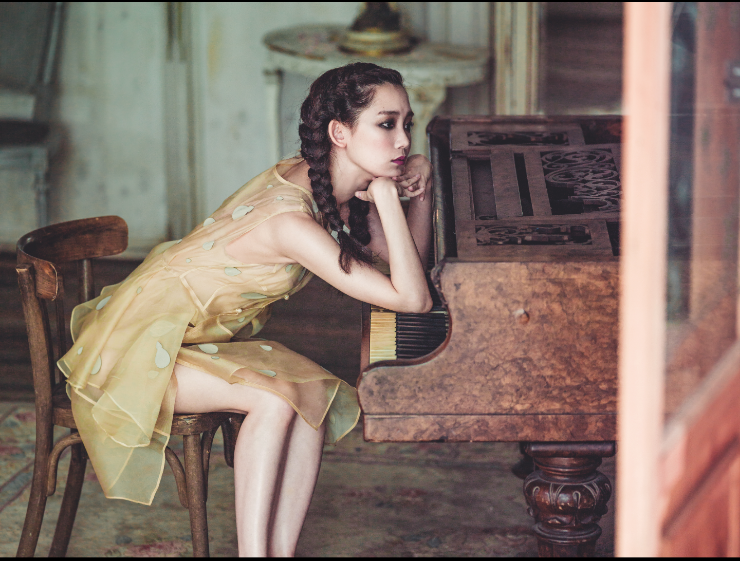 신현빈은 해당 사진에서 고풍스런 짙은 메이크업과 양 옆으로 땋아 내린 헤어스타일을 하고 옐로우 슬리브리스 쉬폰 미니 원피스를 착용, 소녀의 아름다움을 연출하고 있다. 신현빈은 피아노에 걸터앉아 허공에 시선을 처리하며 몽환적인 분위기를 풍기고 있다.