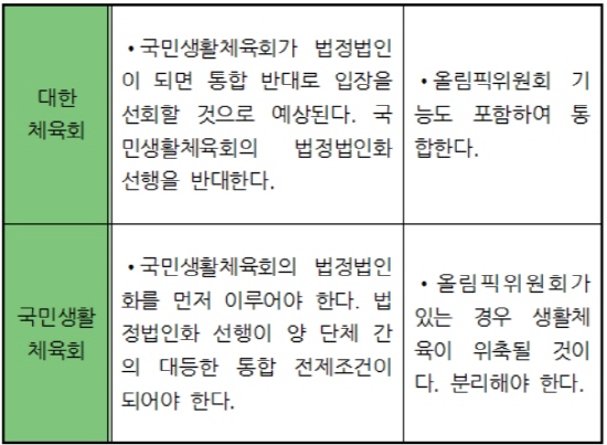▲ 대한체육회, 국민생활체육회 양 체육단체의 이견 정리. |