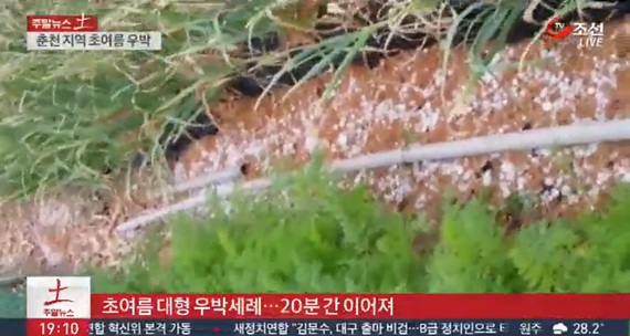 | ▲ 지난 13일 경북 북부 일부지역에 비와 함께 우박이 내려 농작물 피해가 발생했다.TV조선 뉴스화면 캡처. |