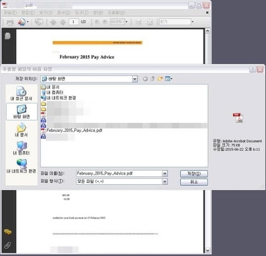 23일 안랩에 따르면 급여 명세서를 가장한 악성코드가 최근 PDF파일의 형태로 유포되고 있다.