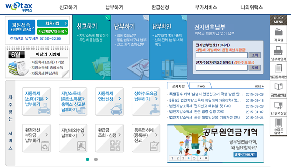 | ▲ 자동차세 납부가 가능한 위택스 사이트 화면 캡처 |