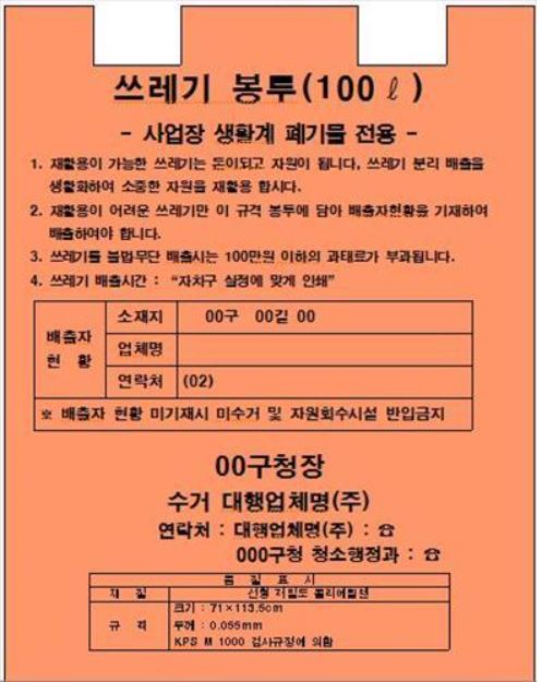 하루 평균 300kg 이상 생활 관련 폐기물을 배출하는 사업장에게 적용되며 해당 업소는 사업장 전용 종량제 봉투에 업소의 소재지·업소명·연락처를 적은 뒤 버려야 한다.