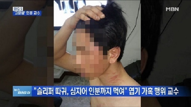 그는 이어 "병원신세를 지고 더 이상 때리지 못하자 (교수는) 내 입에 재갈을 물리고 머리를 비닐봉지로 씌워 호신용 스프레이를 뿌리는 등 가혹행위를 일삼았다"고 덧붙였다.