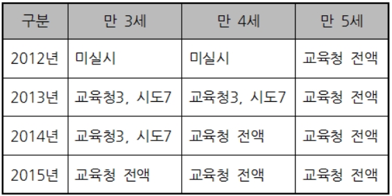 ▲ 교육청 및 시도 광역단체의 ‘누리과정 재원분담’ 2012~2015년 추이. /제작:미디어펜 자료:시도교육감협의회 |